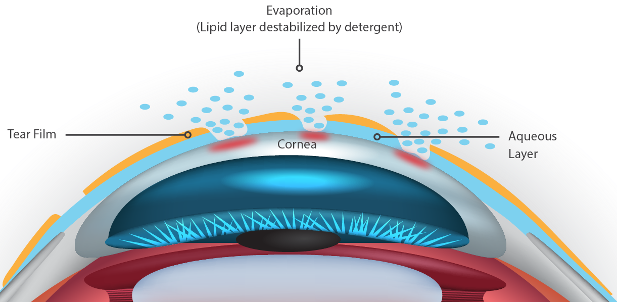 Benzalkonium chloride (BAK) is most commonly used and is a surfactant found in most Glaucoma eye drops that act as a preservative and bactericide. Higher concentrations of BAK however could disrupt the lipid layer of the tear film, leading to tear film instability18.